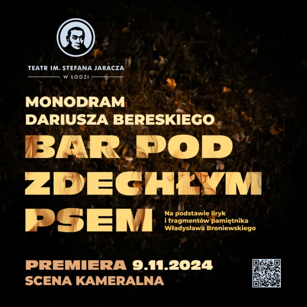 Pierwszą premierą nowego sezonu będzie liryczny monodram naszego aktora Dariusza Bereskiego - „Bar pod zdechłym psem", który powstał w oparciu o liryki i fragmenty pamiętnika Władysława Broniewskiego oraz wiersze własne aktora. W spektaklu usłyszymy także muzykę wykonywaną na żywo przez Michała Hadasika (piano) i